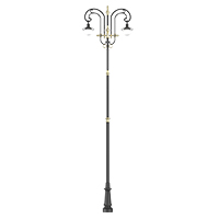 Classic European Double Arm Street Light Pole with Gold Accents