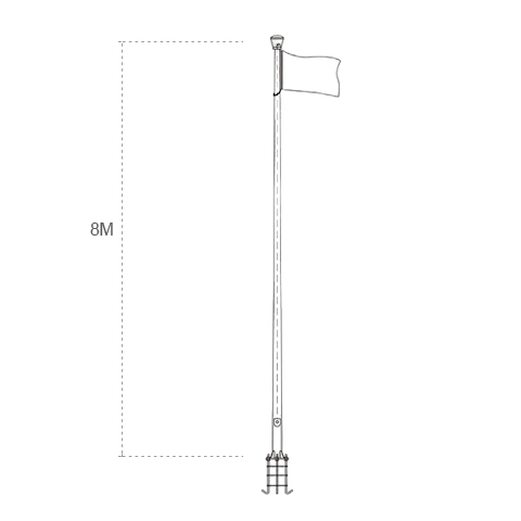 The 8-meter (26ft) specification is the global gold standard for commercial and institutional flag displays, perfectly scaled for flying standard 3# (1920x1280mm) flags in front of 2-to-4 story architectural structures.