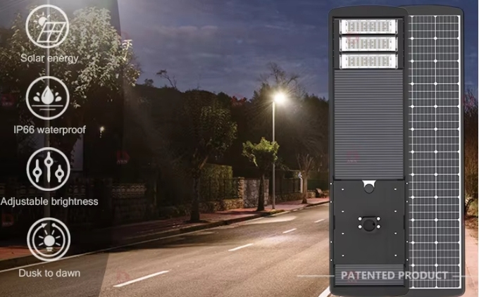 The IP65 all-in-one solar LED street light is an efficient and intelligent lighting solution that integrates solar panels, LED light sources, batteries and control systems. The street light is designed with IP65 protection level, which can effectively resist water and dust, adapt to various adverse weather conditions, and ensure long-term stable operation. Its high-efficiency LED lamp beads provide bright and uniform light, suitable for multiple scenarios such as urban streets, parks, parking lots, industrial parks and rural roads.