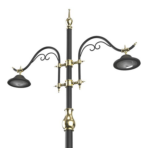 Engineered with a classic Victorian-era silhouette, this double-arm street light features intricate scrollwork and ornamental motifs. The symmetrical twin-bracket design provides balanced lighting distribution, making it an ideal choice for historic districts, luxury resorts, and urban boulevards seeking an upscale, antique aesthetic.
