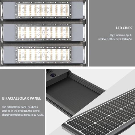 •Bilateral Buffer: Bilateral PV harvesting together with >190 lm/W LEDs provides a buffer against cloudy weather, low-angle winter sun, and minor soiling.