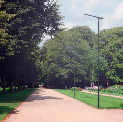 Two integrated solar surfaces are mounted on opposing sides of the lamp’s top profile. This geometry increases exposure to low-angle light and albedo from pavement, water, or building facades. The control unit uses independent tracking to optimize each surface and then merges the harvest into a single, smooth DC charge profile.